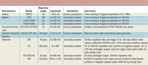 大多数通用脉冲发生器的上升时间在 2.5~10 纳秒范围内。上升时间低于 2.5 纳秒的脉冲发生器相对少见,只有少量高档脉冲发生器才能达到 1 纳秒上升时间(参考文献 2)。上升时间小于 1 纳秒的脉冲发生器更少见。这些仪器都使用秘密的工艺技术和异乎寻常的结构技术,特别是在需要 5~10V 较大摆幅的情况下(参考文献 4 至 16)。现有这种等级的仪器工作性能良好,但价格轻易就能达到 1 万美元;根据功能,价格可升高到 3 万美元。实验室以及生产环境中的转换速率测试可使用价格便宜得多的脉冲发生器。