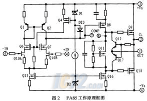 1. 概述 PA85是Apex公司生产的高电压、大功率宽带MOSFET运算放大器,它在安全操作区(SOA)没有二次击穿的限制,通过选择合适的限流电阻可在任何负载下选择适当的内部功耗。PA85可适应较大的电源电压范围并达到很好的电源电压抑制。MOSFET输出级可偏置成线性运放;用户通过外接补偿可轻松的使用PA85。 2. 外部连接及额定参数 PA85的外部连接图如图1所示。图中给出了在不同增益时的相位补偿外围元件RC及CC的值。图2为PA85的内部工作原理图。