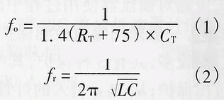 3.2 变频控制电路 我们知道,荧光灯要经过预热,点燃才能进入正常发光工作状态。在这三个状态中,逆变器处于变频工作方式,首先,以比较高的频率对灯丝进行预热,使阴极达到发射电子的温度;然后,频率快速下降,当到达串联谐振频率时,产生的谐振高压使灯管瞬间击穿点燃;最后,稳定在工作频率上。IR2153的振荡频率可由式(1)决定,串联谐振频率由式(2)决定。